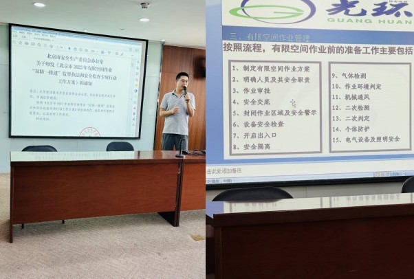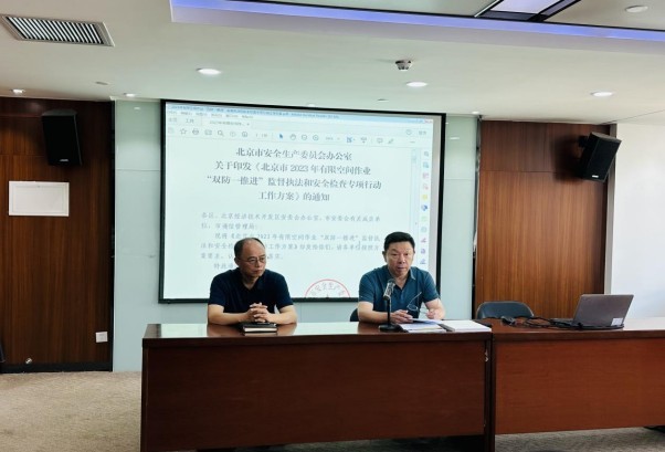 程文力副总传达了北京市应急局电视电话会议的精神,并详细解读了“北京市安全生产委员会办公室关于印发《北京市 2023 年有限空间作业“双防一推进”监督执法和安全检查专项行动工作方案》的通知。”。